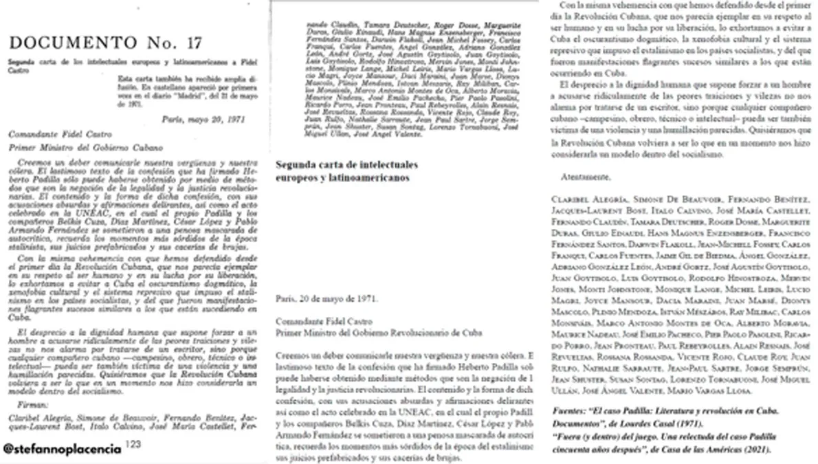 El músico italiano Luigi Nono, quien firmó este pronunciamiento, luego escribiría: “Mi adhesión a la carta escrita por un grupo de intelectuales europeos sobre el caso del poeta ha sido un error mío (y espero que otros lo reconozcan abiertamente)”. En esa misma línea, García Márquez y Cortázar fueron unos de los pocos escritores que mantuvieron sus relaciones con el régimen cubano después del caso Padilla, aunque Gabo luego diría que en ese documento de protesta pusieron su nombre sin su autorización.