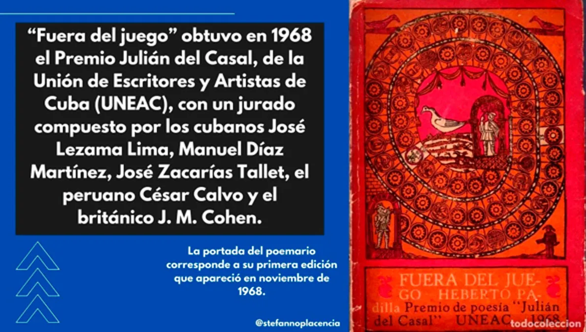 Sobre su poemario “Fuera del juego”, que ganó el Premio Julián del Casal de 1968, comentó que tenía páginas que “llevan al espíritu derrotista, y el espíritu derrotista es contrarrevolución”. Añadió que el libro estaba “lleno de amargura, lleno de pesimismo. Ese libro está escrito con lecturas, ese libro no expresa una experiencia de la vida, no interioriza la experiencia cubana. Hay que reconocerlo. Ese libro expresa un desencanto, y el que lo aprecie lo único que hace es proyectar su propio desencanto”.