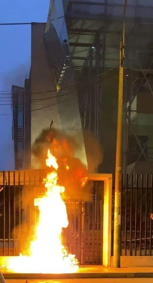 Un grupo de delincuentes detonó un explosivo en la sede del Instituto Nacional de Defensa de la Competencia y de la Protección de la Propiedad Intelectual (Indecopi) en San Borja cerca de las 6:15 a.m., luego de dejar una corona fúnebre y municiones de arma en el piso.