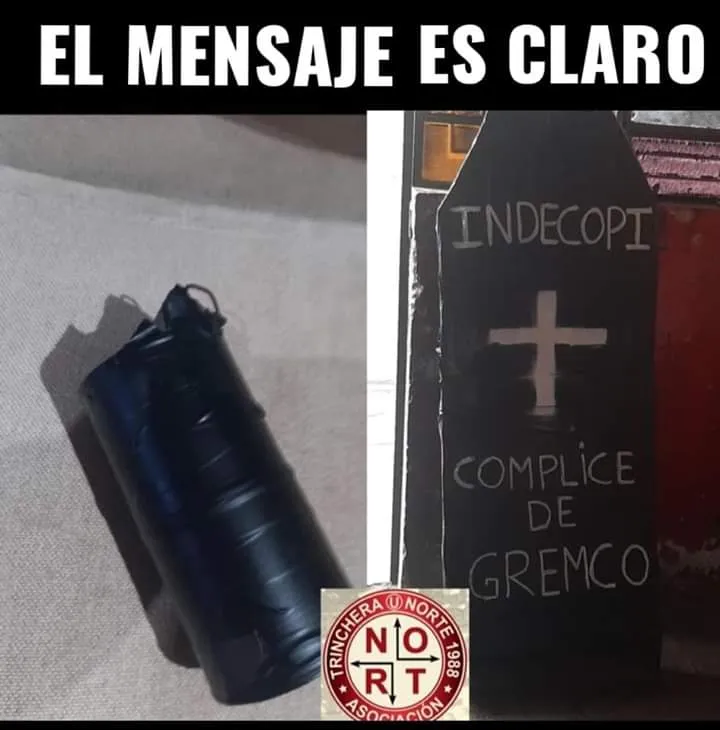 "Es una manera de intimidar a los directivos de Indecopi", indicaron fuentes policiales en declaraciones a la prensa. "Se desconoce hasta el momento de qué artefacto se trata, estamos analizándolo", agregaron.